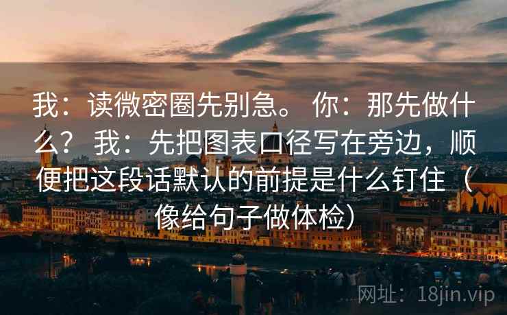 我:读微密圈先别急。 你:那先做什么? 我:先把图表口径写在旁边,顺便把这段话默认的前提是什么钉住(像给句子做体检)